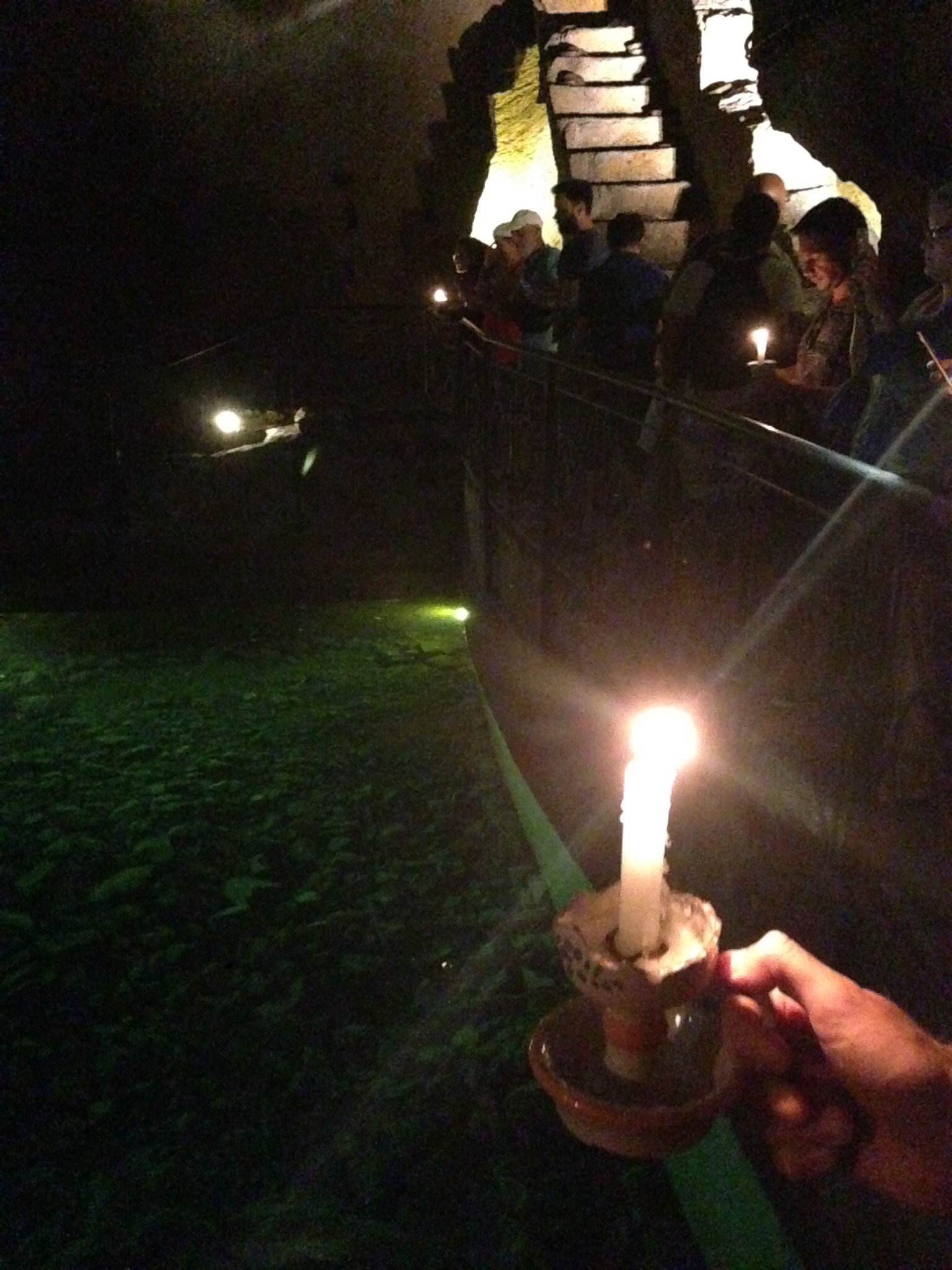 To see the ancient aqueducts you have to squeeze sideways through particularly skinny tunnels holding a candle (not for claustrophobes!).