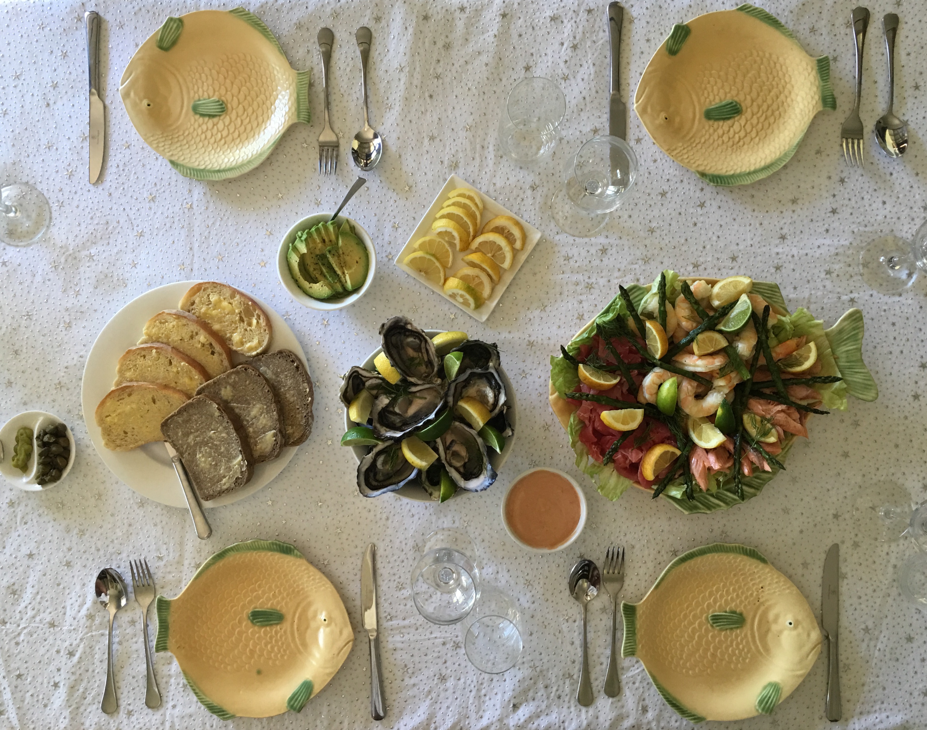 We had prawns, tuna sashimi, smoked trout, smoked salmon and oysters.