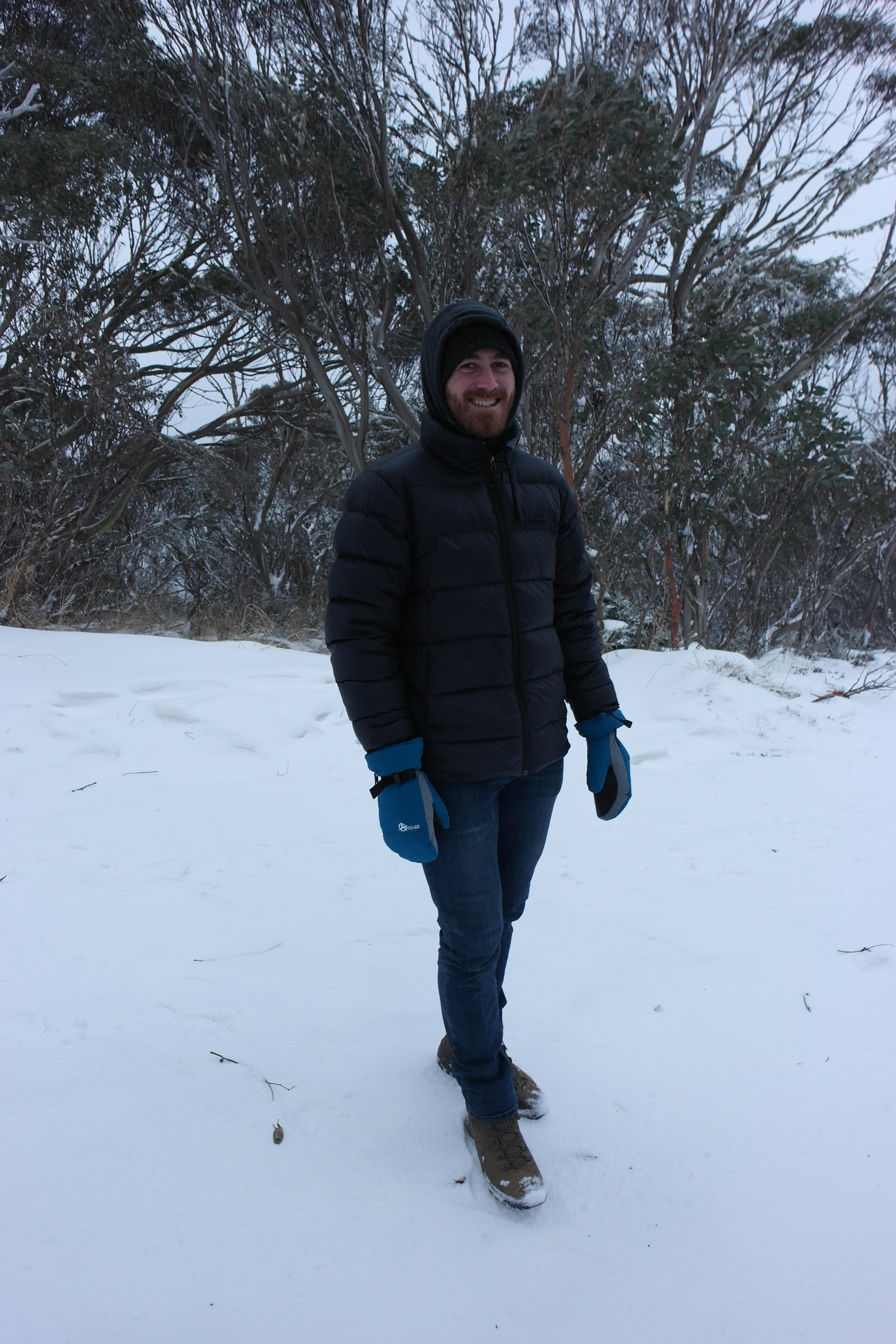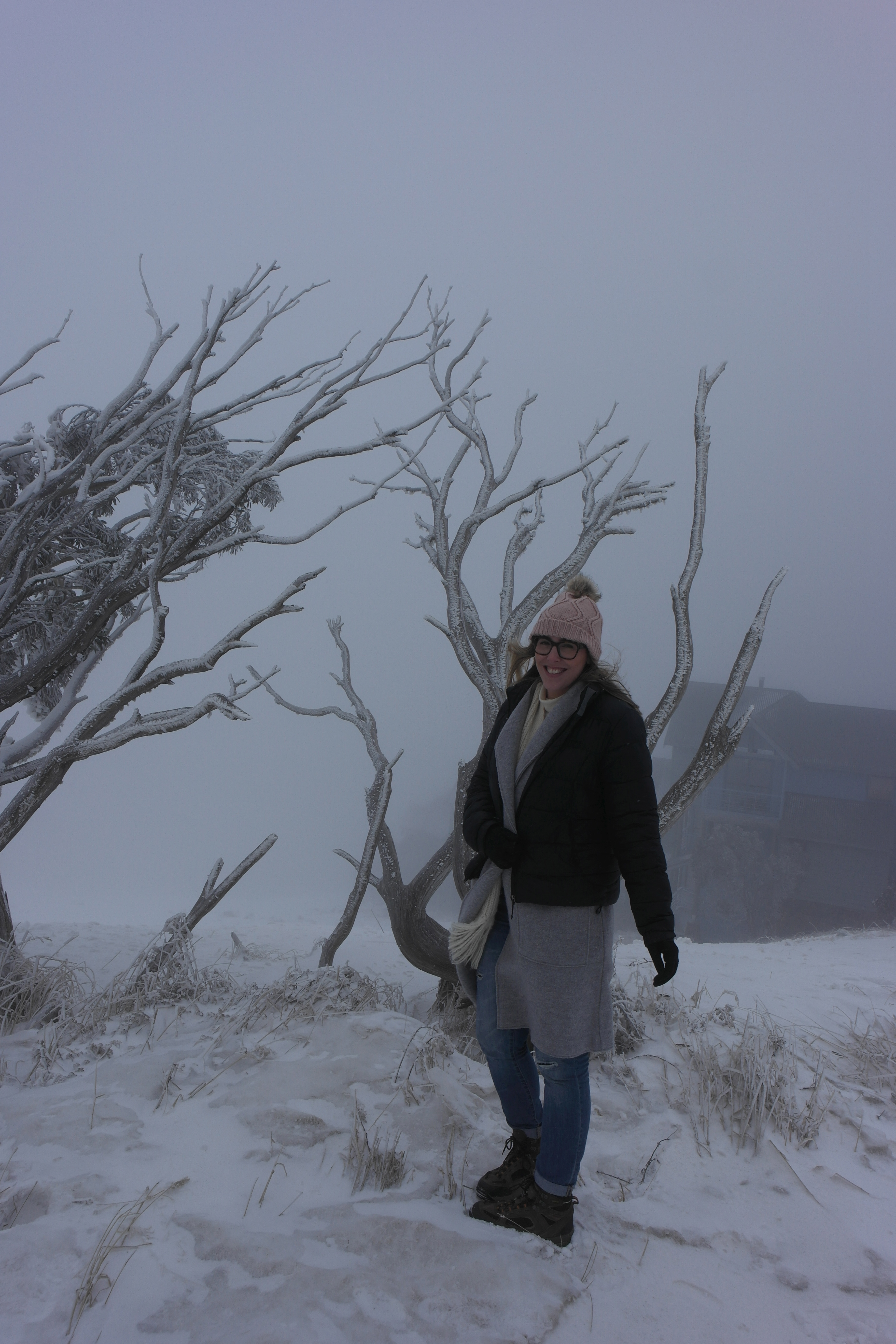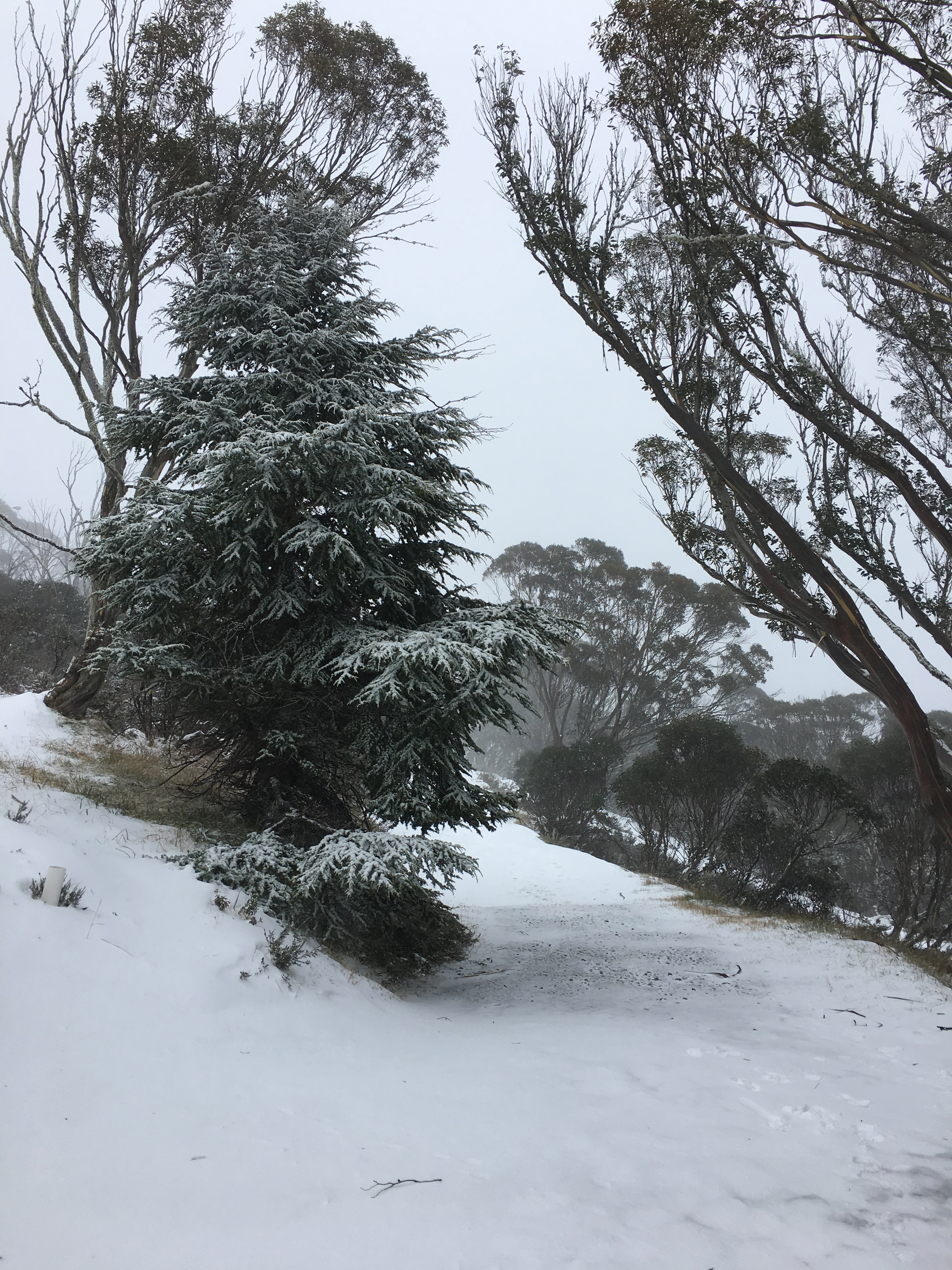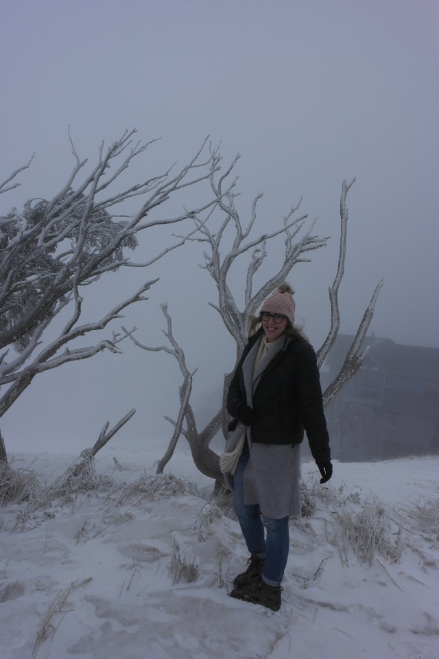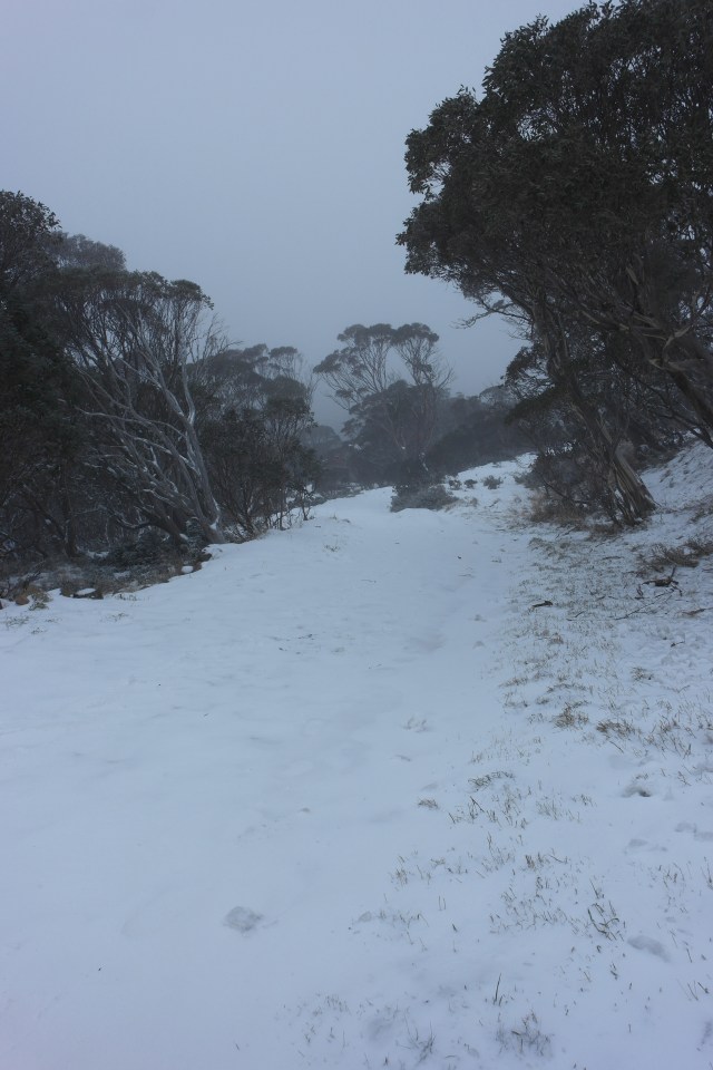 Winding our way up to Mt Hotham it quickly became clear we were in a very different snow situation compared with Falls Creek the previous day. Snow was falling, the wind was howling and visibility wasn’t great. I was excited!
