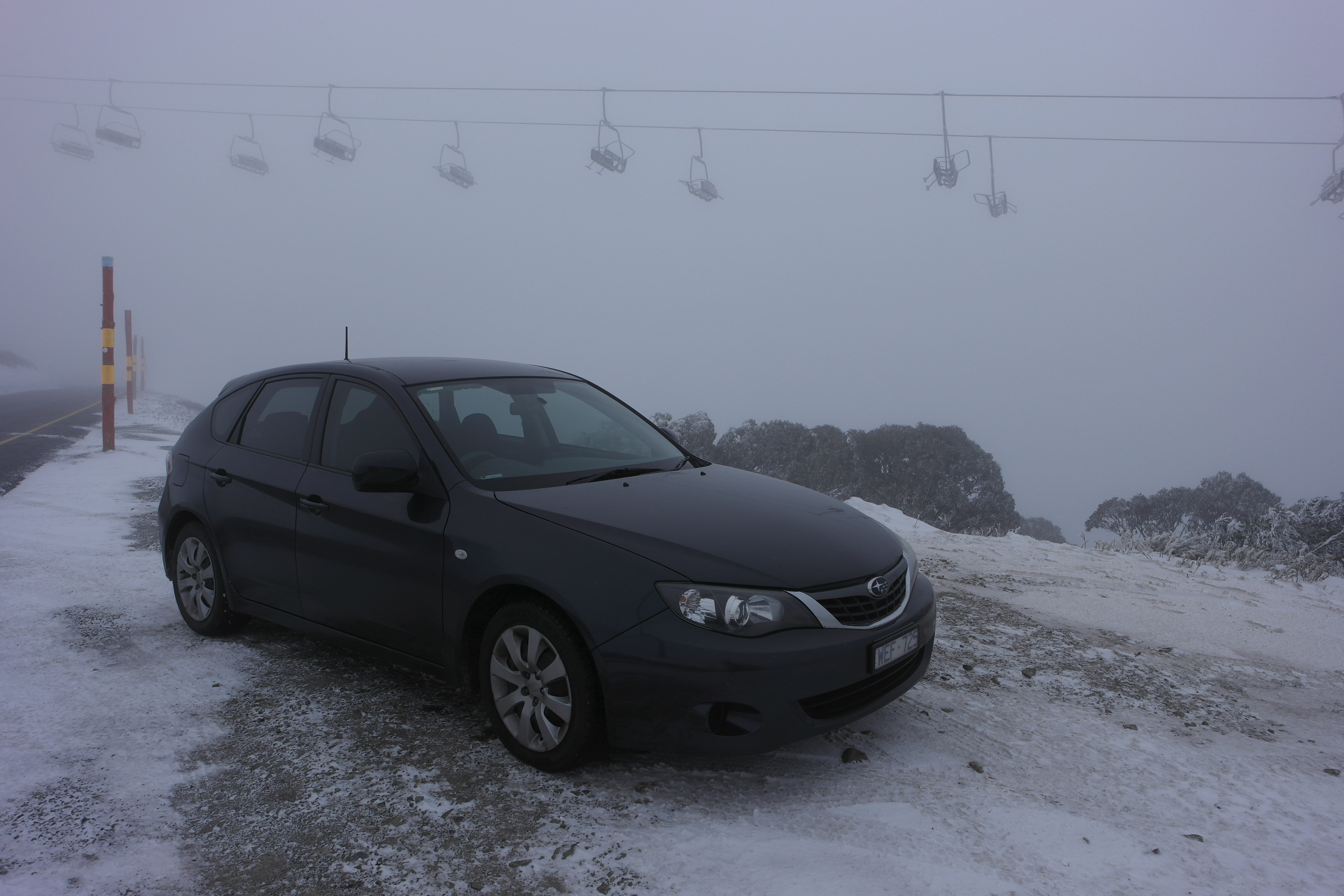 We stopped to take a photo of the Hotham sign and my phone said it was -4 degrees. Not sure how accurate that is but it certainly felt below freezing. And hard to keep one’s eyes open…