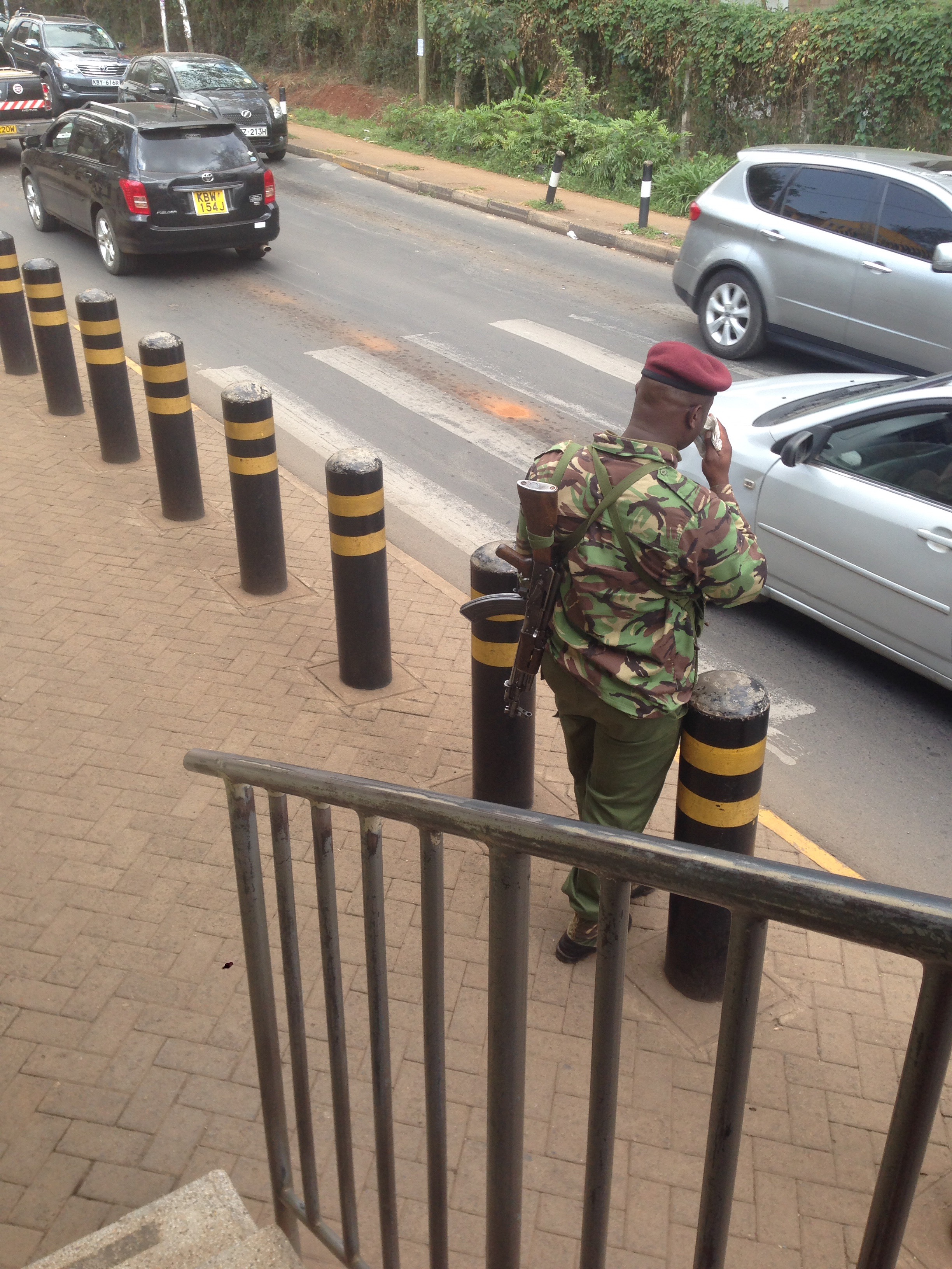 The following day we escorted my sister on a thrilling trip to the Australian High Commission. We weren’t allowed inside while Sarah got some documents for her wedding (!!!) so we hung around outside and I chatted to Charles, a heavily armed guard and former Masai man.
