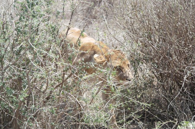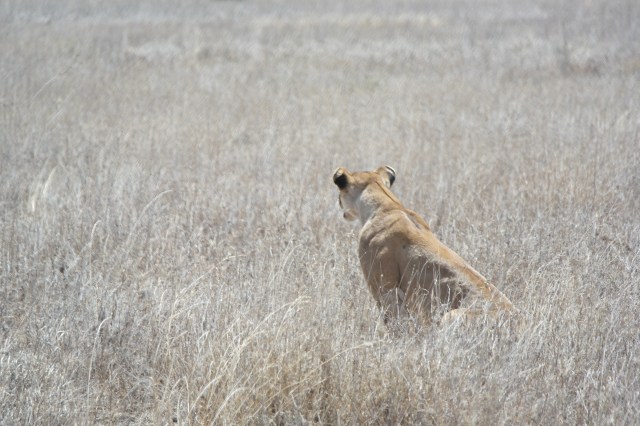 Eventually it was time to leave. On our way back to the gate Sarah spotted a lioness stalking some Thomson’s gazelle.