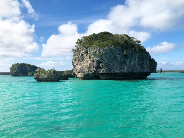 We weren’t keen to join a bus trip from our hotel to Upi Bay in the morning because we thought it might be cloudy so we decided to wing it and head out there ourselves in the afternoon. The receptionist at our hotel had called ahead to organise us a trip with a local man on his boat. When we got there the tide was out and we we found a man who was willing to take us out if we could push his beached boat into the water. We still don’t know if we ended up with the man the receptionist had contacted or not?! Either way we loved putting along amongst the giant rock formations.