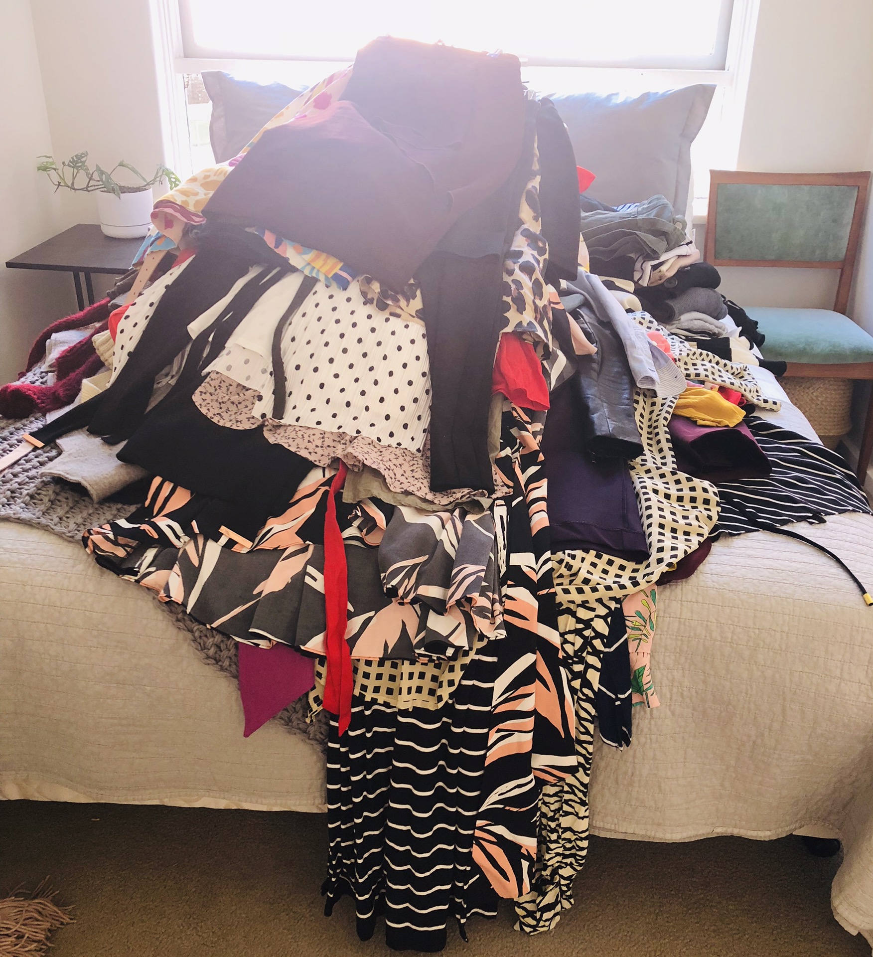 The purpose of this is to fully appreciate just how many patterned sun dresses you own and don’t wear. Or that’s how it felt when I stared at the bulbous pile overwhelming the bed. The next step, according to Kondo, is to pick up each item and decide whether or not it ‘sparks joy’.