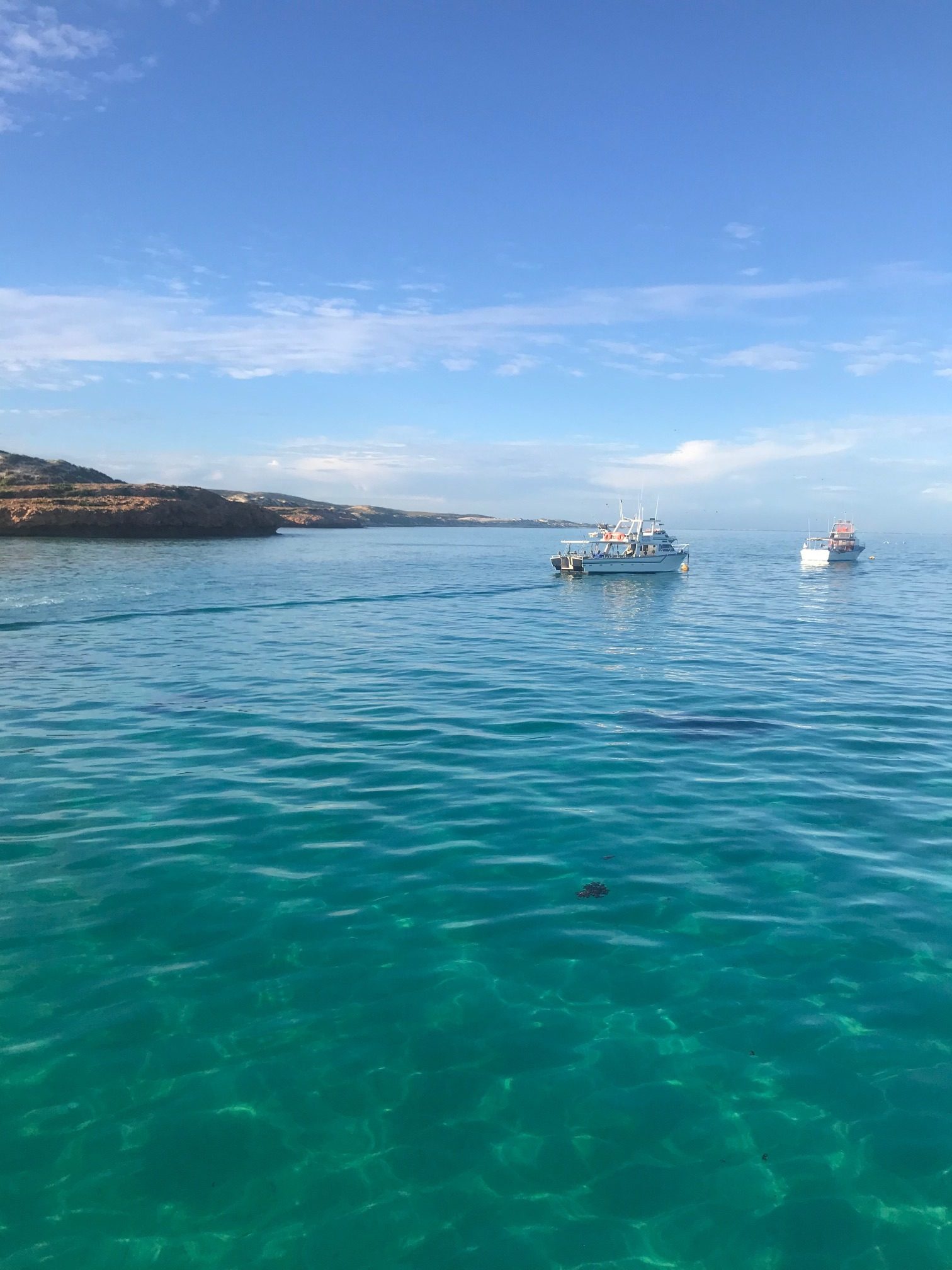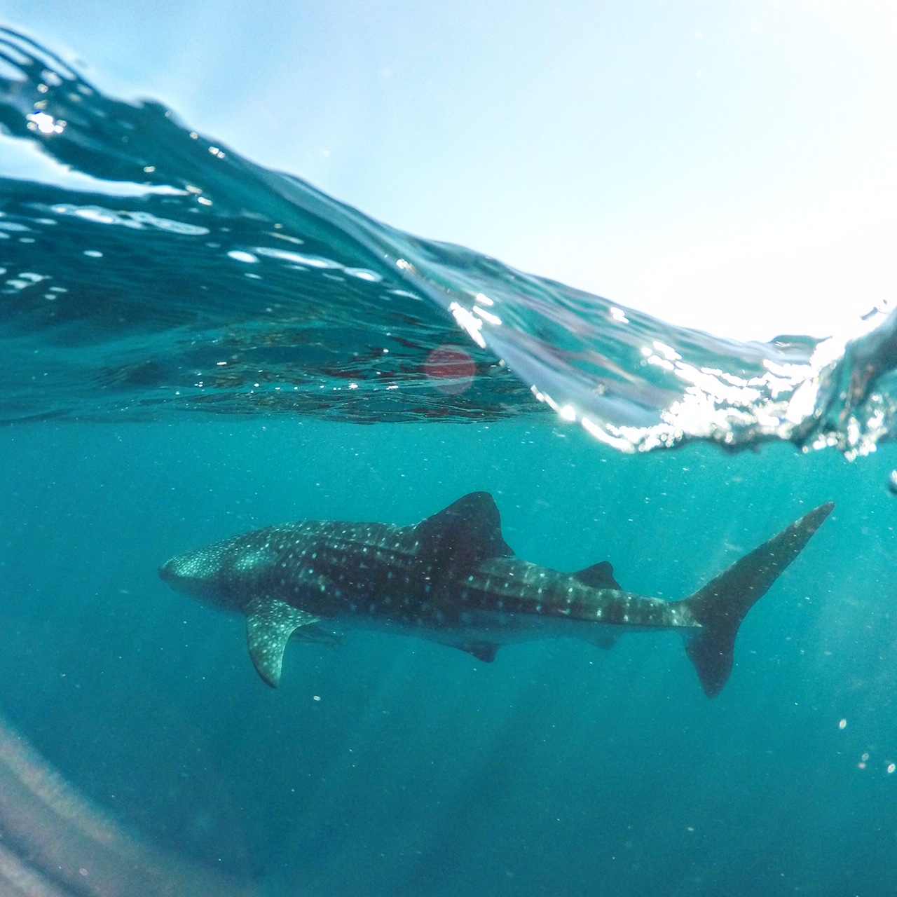 We split into groups so we could constantly rotate between swimming and hauling ourselves up onto the boat to move ahead of the Whale Shark to drop in again. It was amazing and tiring. The most thrilling part was when the shark would suddenly decide to turn and would swim directly at you until you scampered out of the way.